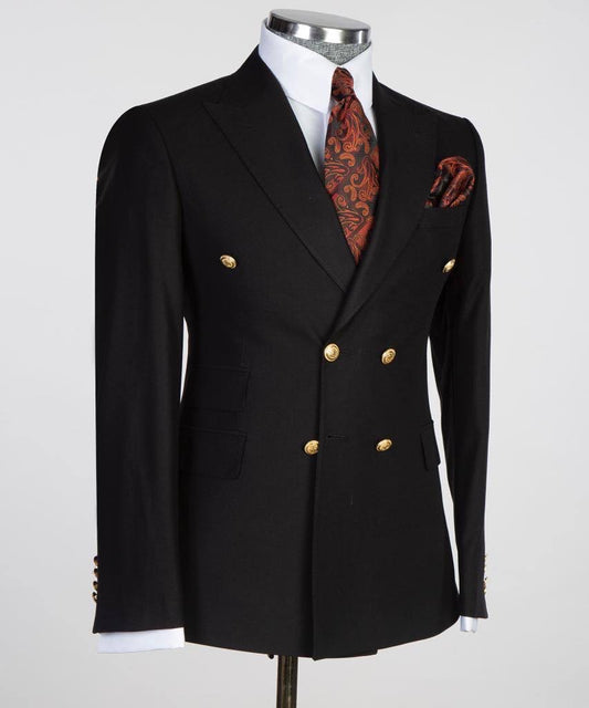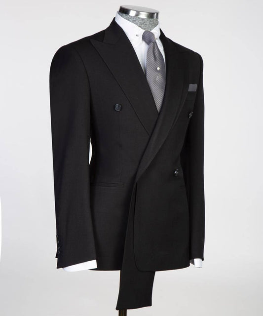 Men's 2 Piece Double Breasted Black Tuxedo Suit Shawl Lapel