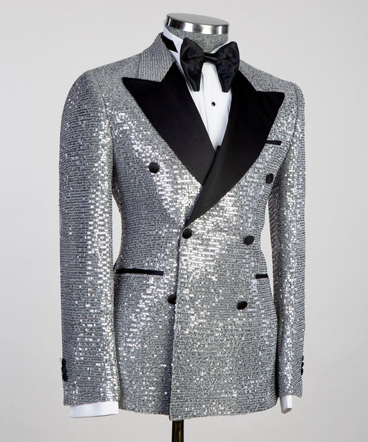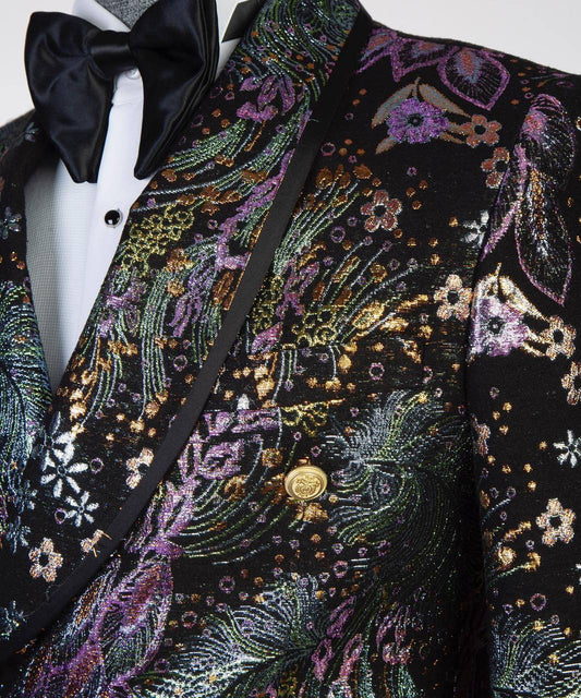 Men's Black Tuxedo, Silver Stoned, Shawl Design