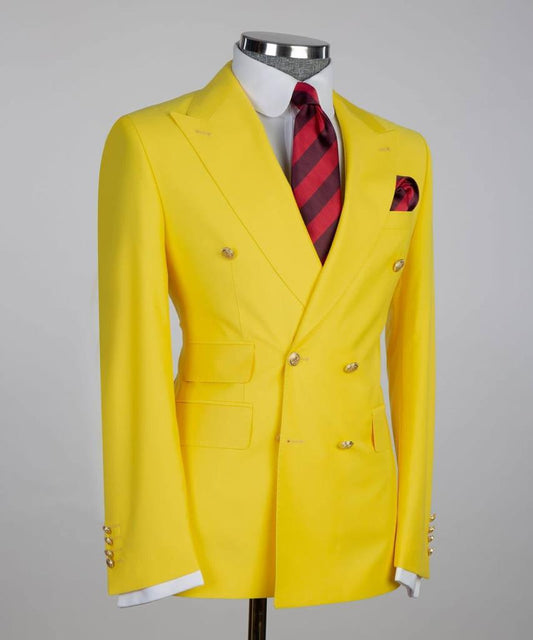 Men's Suit 2 Piece Double Breasted Yellow,Peak Lapel