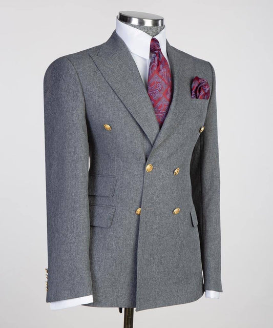 Men's Suit, 2 Piece Plaided Double Breasted Beige