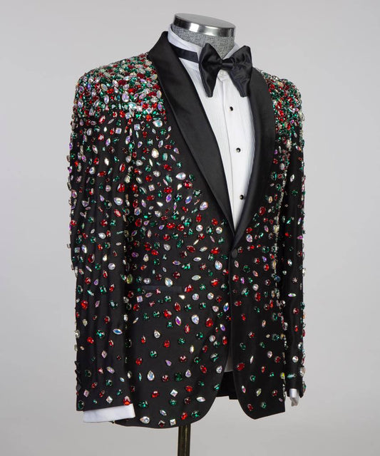 Men's 3 Piece Tuxedo Stone Detailed Collar