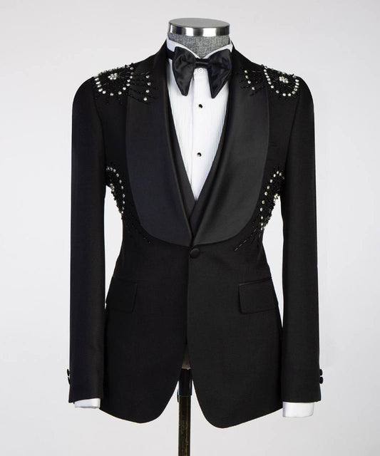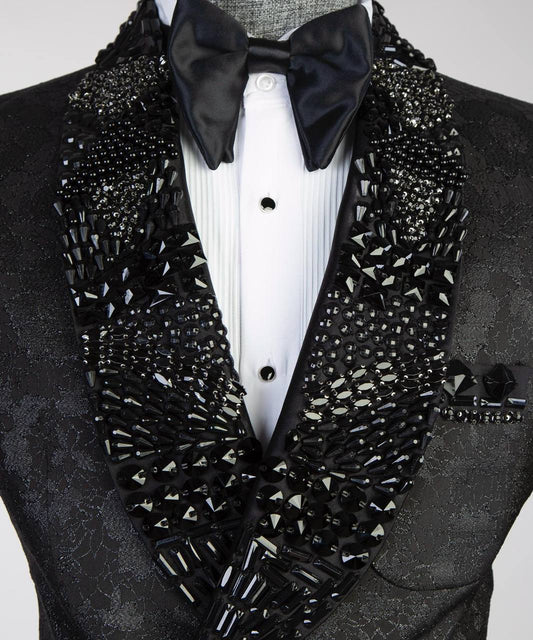 Black Tuxedo,3 Piece, Black Beaded BlazerVendor:FERENTINORegular price £499.00Regular priceUnit price per-