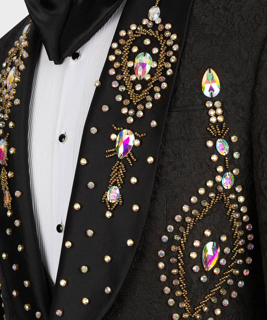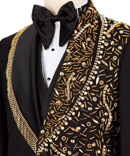 Black Tuxedo,3 Piece, Gold Beaded BlazerVendor:FERENTINORegular price £739.00Regular priceUnit price per
