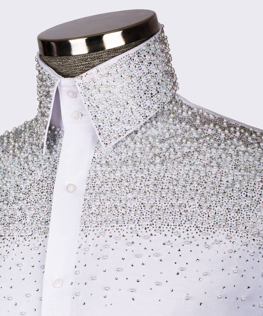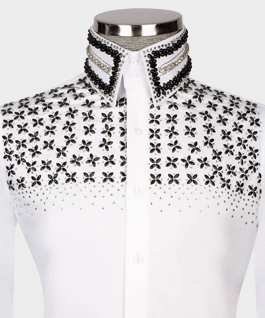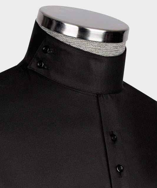 High Collar Beaded Exclusive Black Shirt with Gold Beads