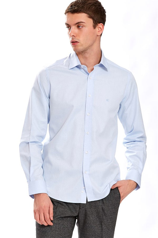 Men's Regular Fit Blue Cotton Shirt - Bristol