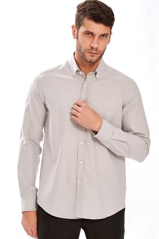 Men's Regular Fit Light Grey Cotton Shirt - Timya
