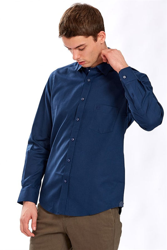 Men's Regular Fit Navy Blue Cotton Shirt - Vegas