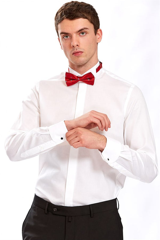 Men's Slim Fit, Long Sleeve, White Cotton Shirt