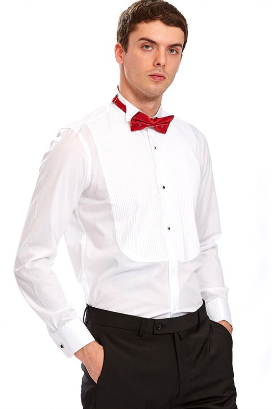 Men's Slim Fit White Cotton Shirt Pleaded- Brenta