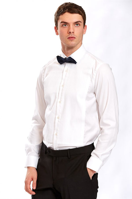 Men's Slim Fit White Cotton Shirt Pleaded- Marzio