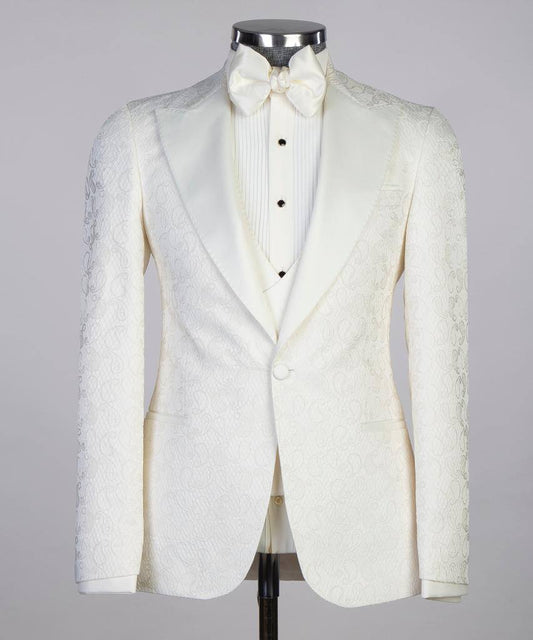 3 pièces pour homme Stone Designed_Tuxedo, Brillant, Blanc, Costume, Costume, Perlé