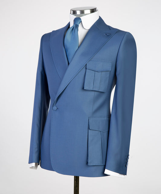 Costume croisé, 2 pièces, bleu, design châle, idéal pour toutes les occasions...