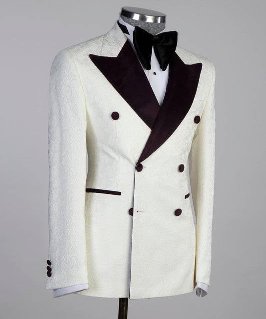 Smoking croisé, beige, costume, revers en velours, look élégant, idéal pour toutes les occasions...