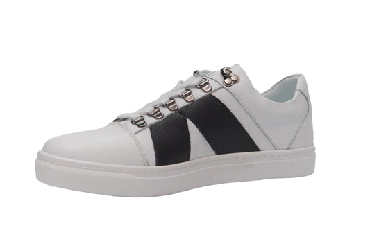 Casual, fait à la main, chaussures pour hommes en cuir véritable 12336 blanc/bleu
