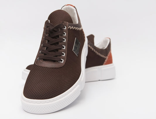 Casual, fait à la main, chaussures en daim pour hommes en cuir véritable 12234 marron