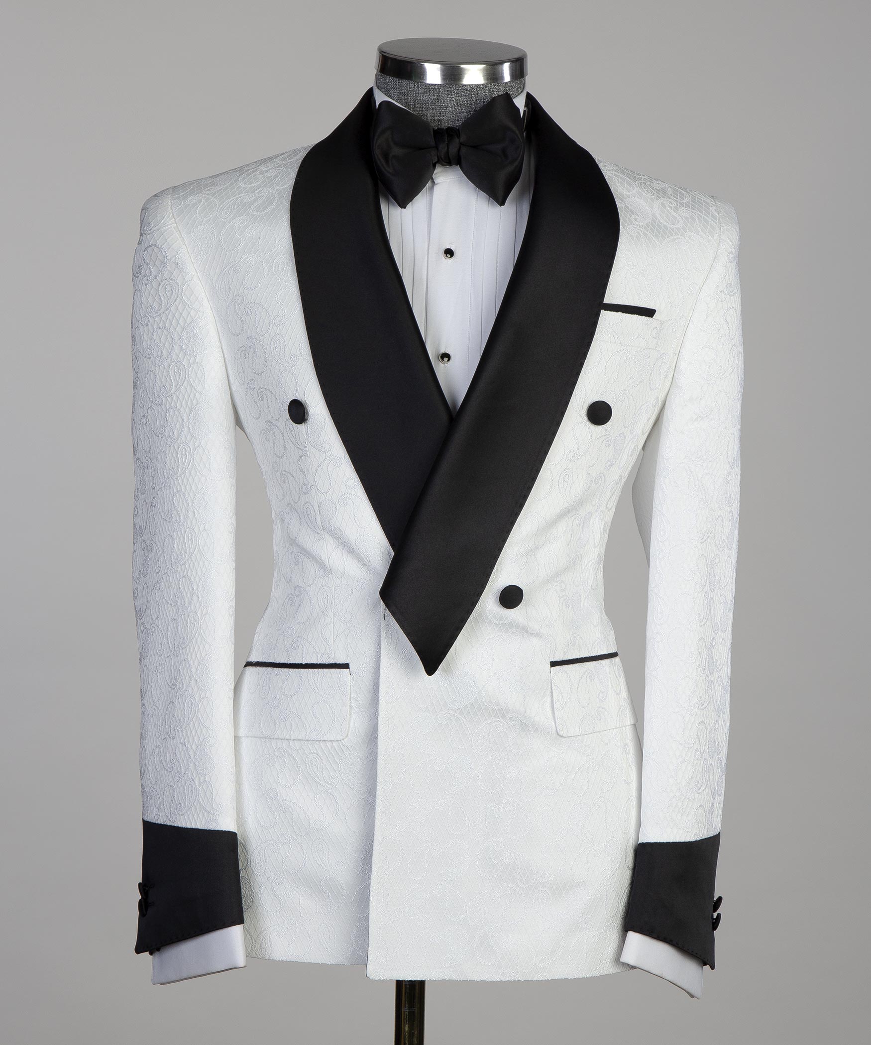 - Men's 3 Piece Suit for Wedding, Celebration, Party, Prom, Costume for best Shows, Exclusive Designed Unique Suit, Groom, White with Black Lapel
